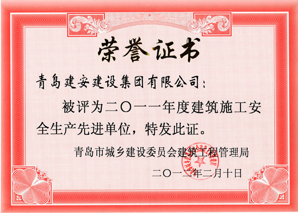 青岛市建筑施工安全生产先进单位