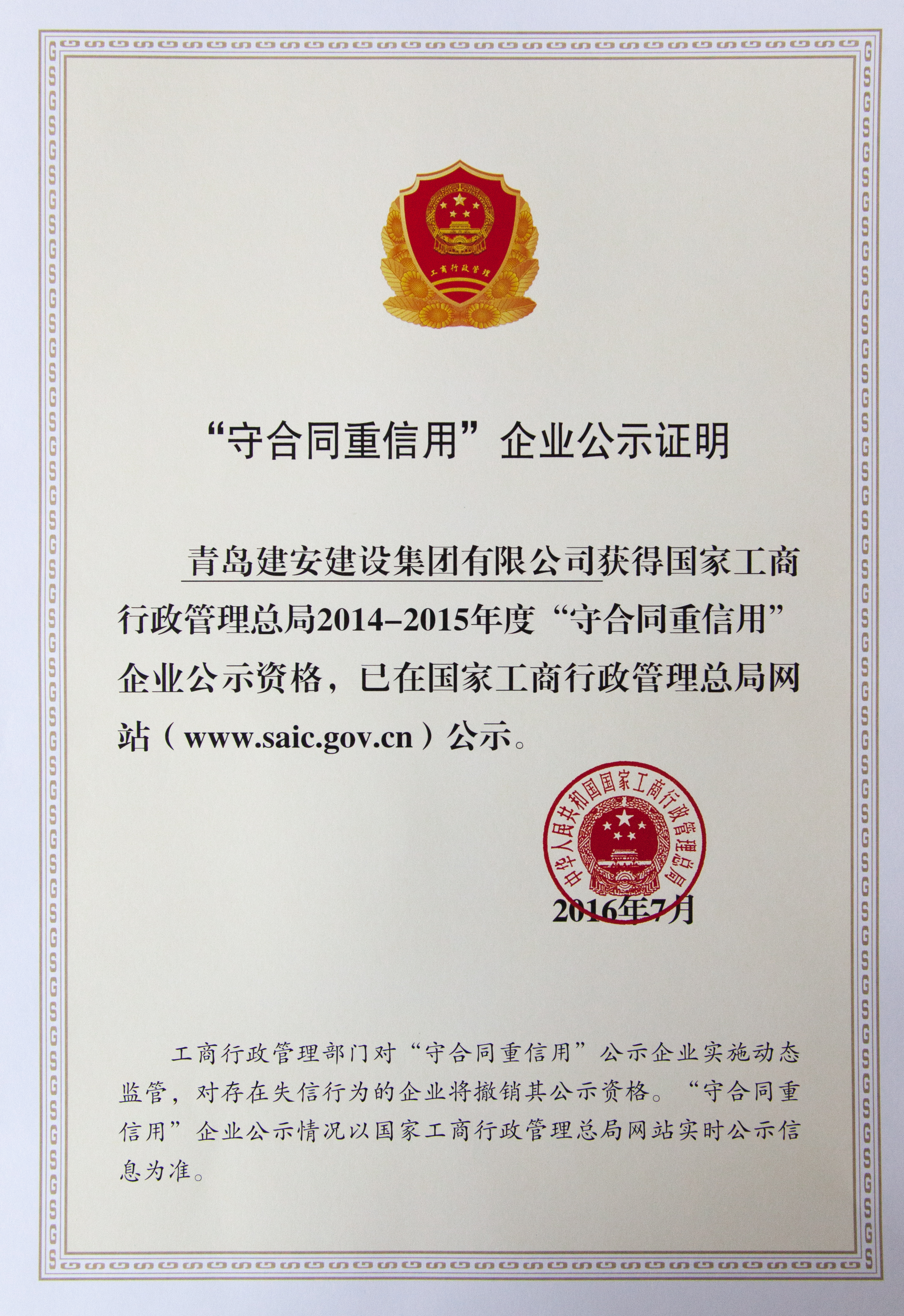 国家级“守合同重信用企业”