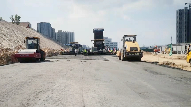 唐河路-安顺路打通工程二灰基层摊铺顺利完成首段验收