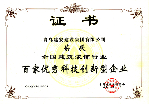 全国建筑装饰行业百家优秀科技创新型企业