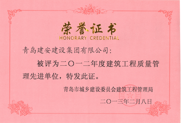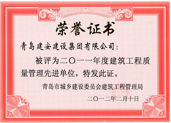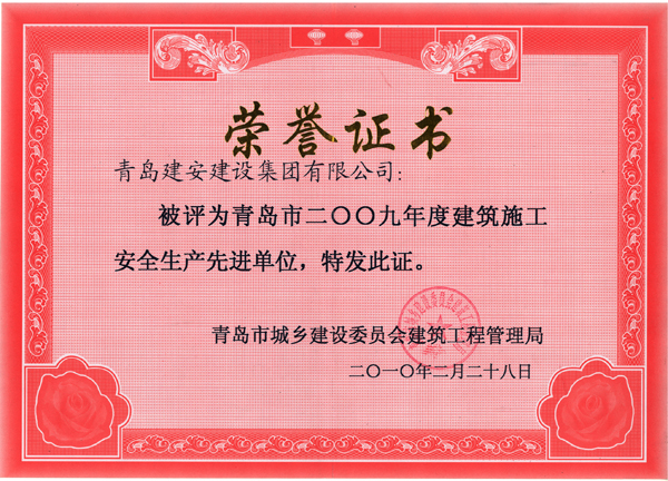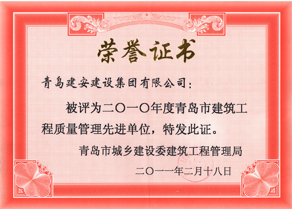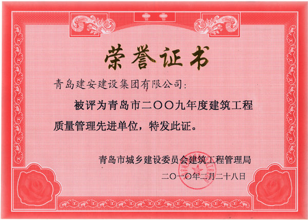 青岛市2007-2009年度“精品工程”创大红鹰188070.COm作突出贡献单位