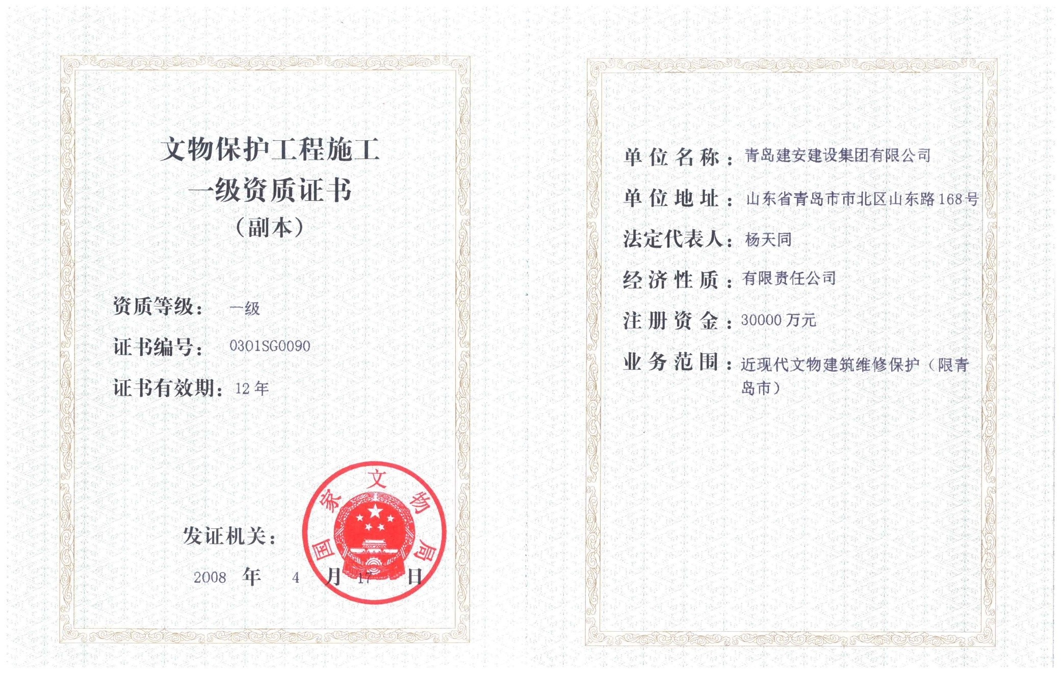 文物保护工程与施工壹级资质