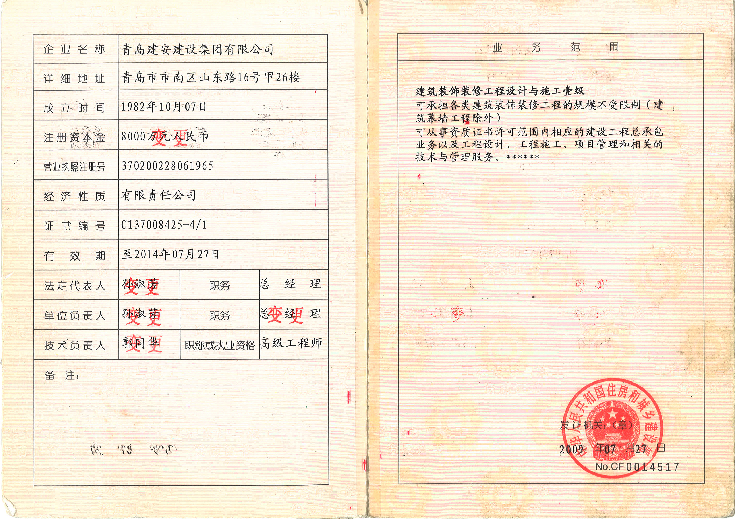 装饰资质证书